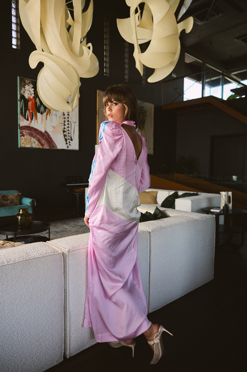 Crafted in a luxurious, buttery-soft fabric that flows effortlessly, the silhouette is both relaxed and refined. Puff sleeves add a touch of volume and charm, while the graceful V-shaped back offers allure yet remains bra-friendly for everyday wearability.